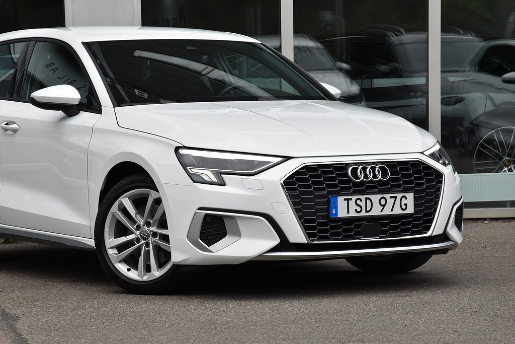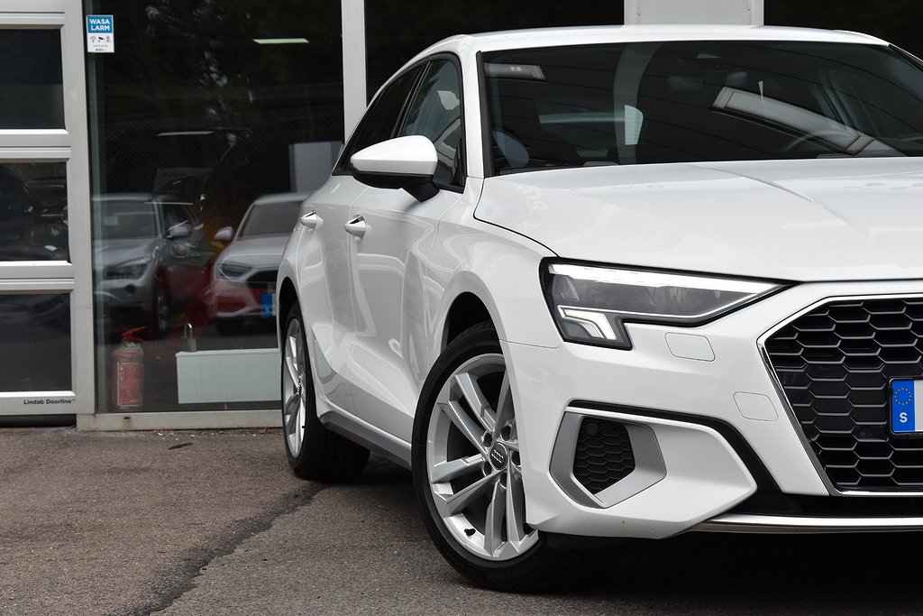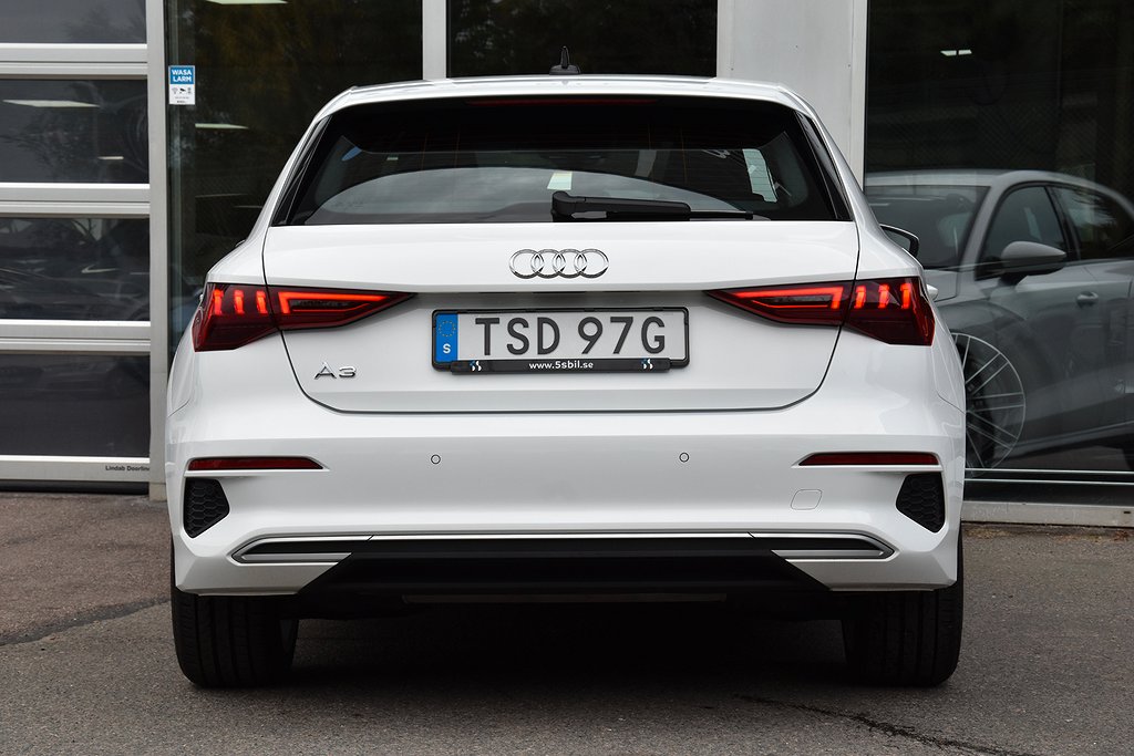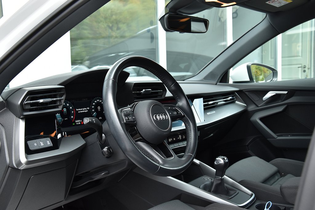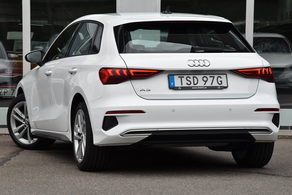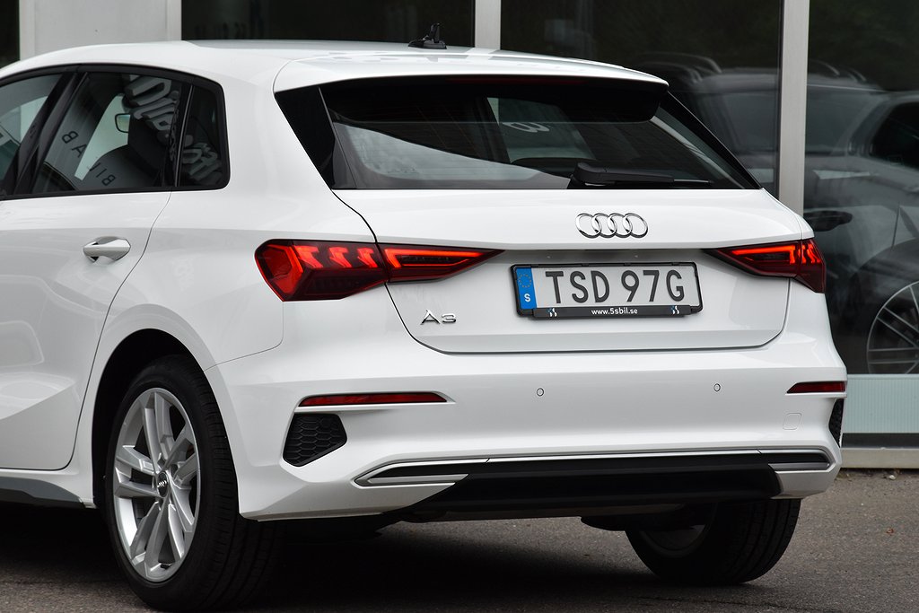 Audi A3 Sportback 35 TFSI Manuell, 150hk, 2021 – i helt rätt utförande med bland annat p-sensorer / Apple CarPlay / digital cockpit / Audi Drive Select / Audi Pre Sense / körfältsvarnare / avståndsvarnare / USB / Sport Edition / sportstolar / mörkt innertak.