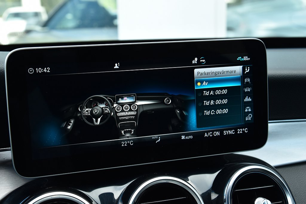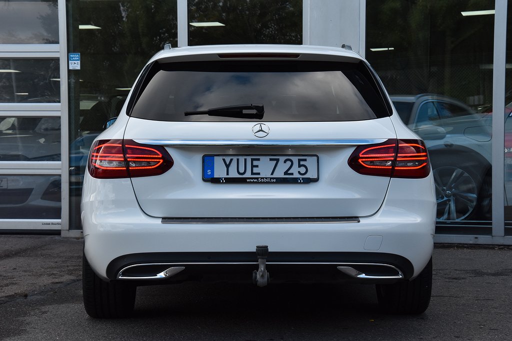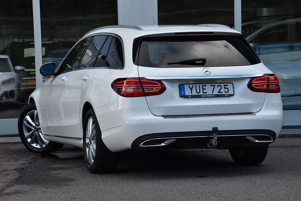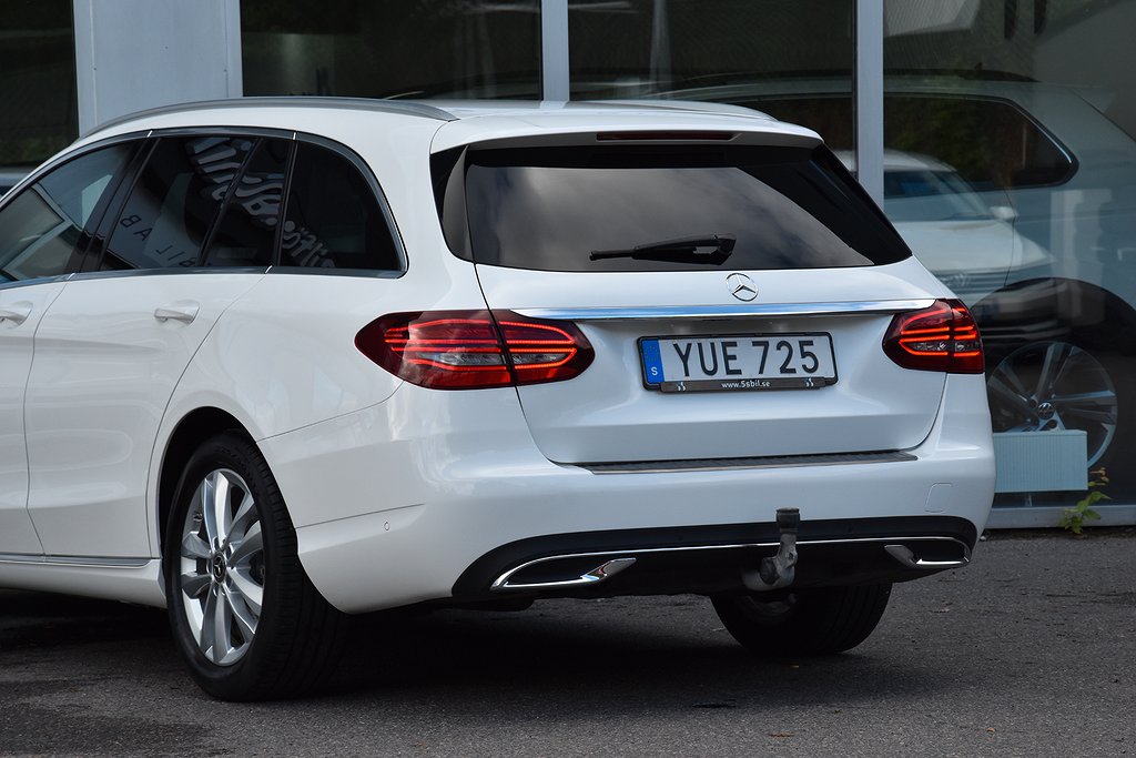 Mercedes-Benz C 200 T d 9G-Tronic, 150hk, 2019 – i helt rätt utförande med bland annat infällbar dragkrok / backkamera / värmare / dieselvärmare / halvskinn / navigation / elstolar / elbaklucka / Dynamic Select / 360-sensorer / Bluetooth / telefon / USB.
