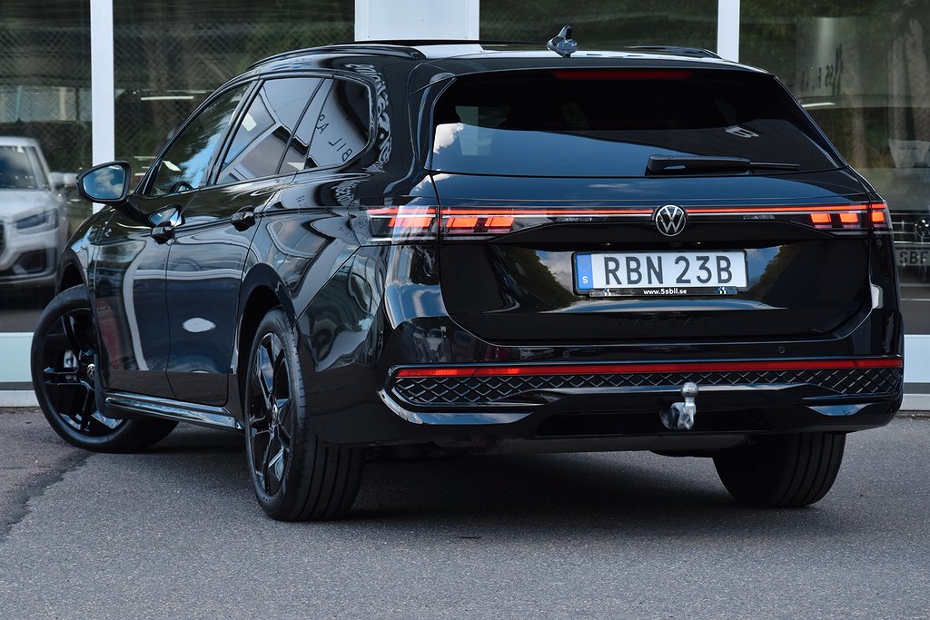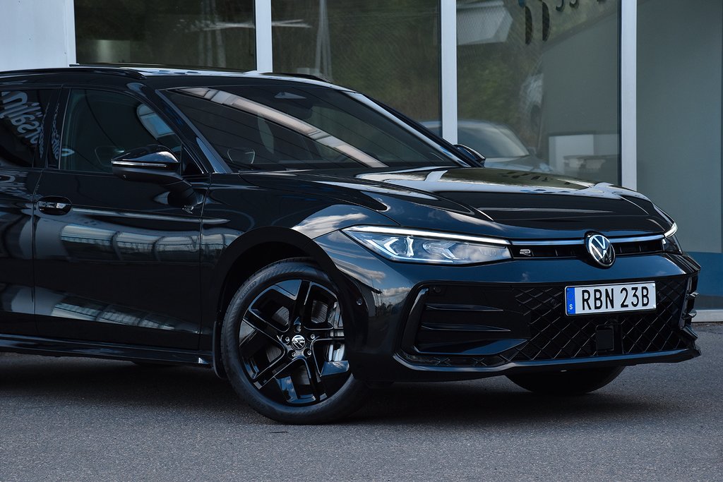 Volkswagen Passat Variant eHybrid 1.5 TSI OPF DSG Sekventiell, 272hk, 2025 – i helt rätt utförande med bland annat R-Line Black Style / infällbar dragkrok / 360 kamera / 360 sensorer / panoramaglastak / taklucka / Harman Kardon / utökad alcantara/skinn interiör / värmare / el baklucka / Vinterpaket / parkeringsvärme / kupévärmare / navigation / Apple CarPlay / Android Auto / alcantara sportsäten / rattvärme / massagestolar / Lane Assist / Front Assist / adaptiv farthållare / filbytesassistent / Road Sign Info / digital cockpit / Black Edition.