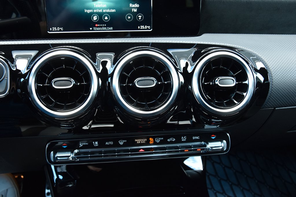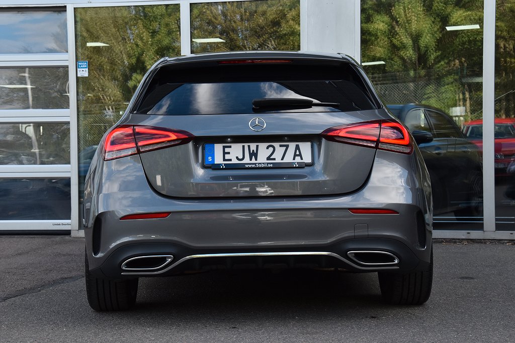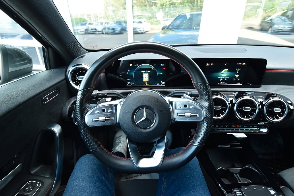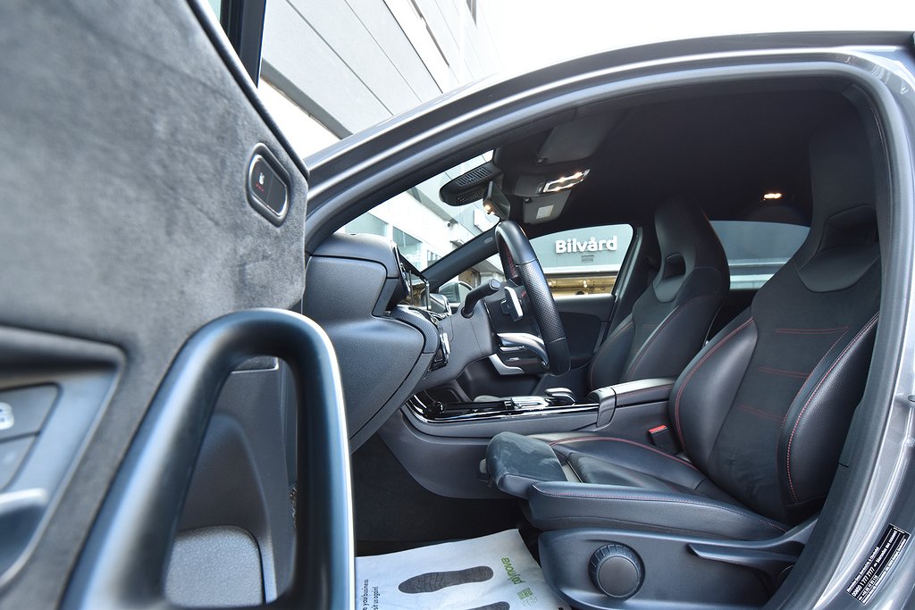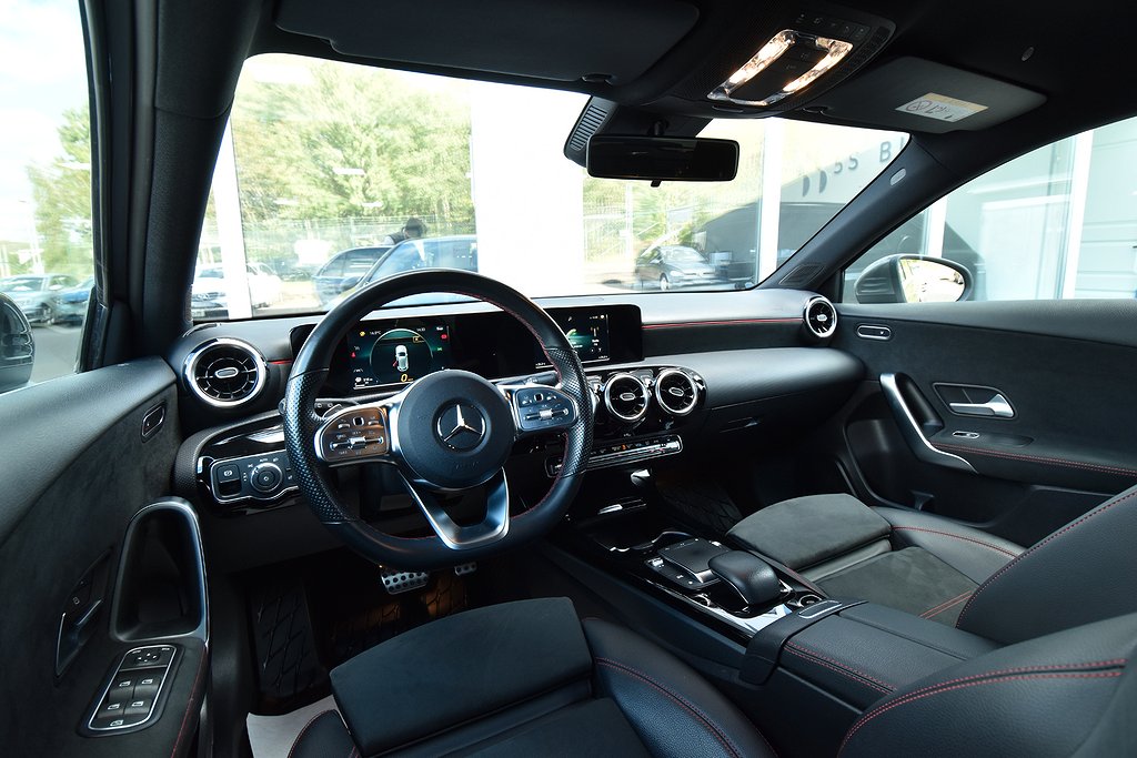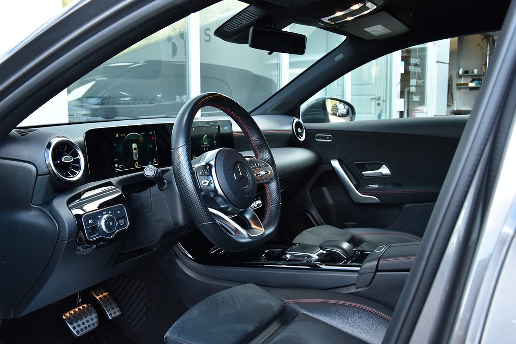 Mercedes-Benz A 180 7G-DCT, 136hk, 2020 – i helt rätt utförande med bland annat AMG / backkamera / Dynamic Select / alcantara-skinnklädsel / röd kontrastsöm / svart innertak / sportstolar / sportratt / Bluetooth / telefon / USB / farthållare / autobroms.