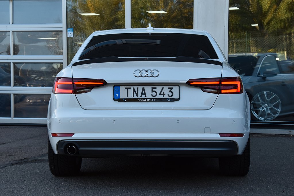 Audi A4 Sedan 2.0 TDI S Tronic, 150hk, 2018 – i helt rätt utförande med bland annat / parkeringssensorer / Audi Pre Sense / adaptiv farthållare / bilköassistent / Active Lane Assist / Apple CarPlay / Android Auto / sportstolar.