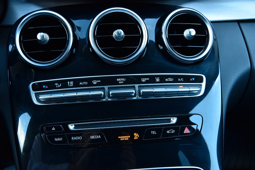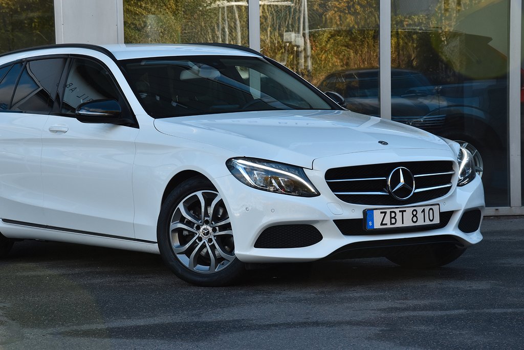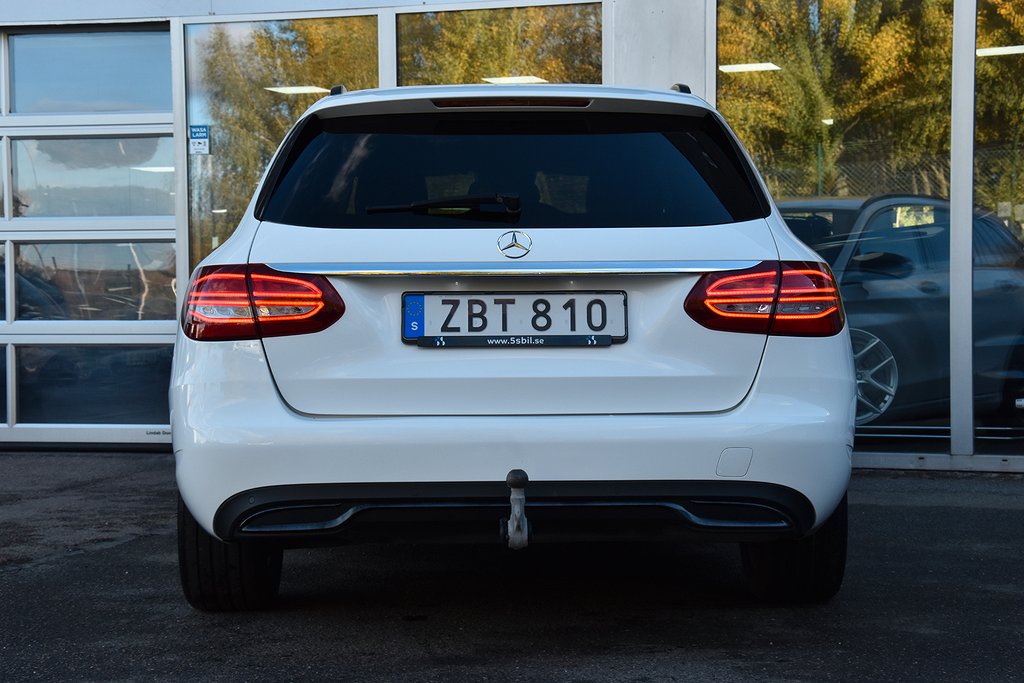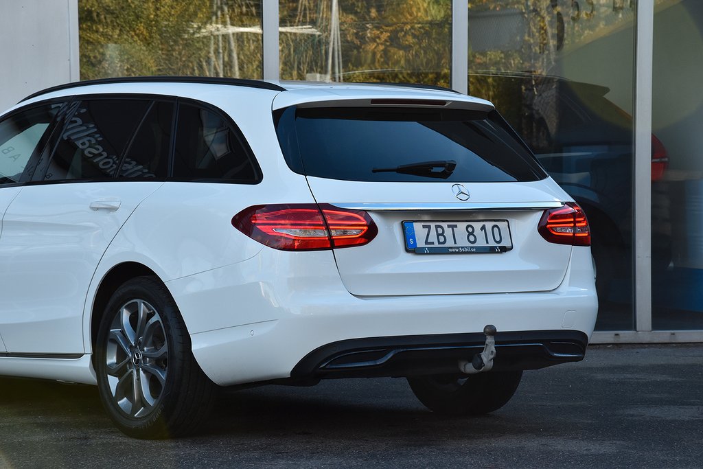 Mercedes-Benz C 200 T d 7G-Tronic Plus, 136hk, 2018 – i helt rätt utförande med bland annat infällbar dragkrok / parkeringssensorer / värmare / dieselvärmare / kupévärmare / växelpaddlar / Apple CarPlay / Android Auto / USB / Bluetooth / telefon / elstolar / Dynamic Select / halvskinn klädsel.