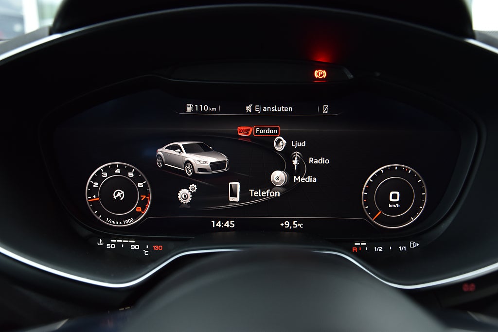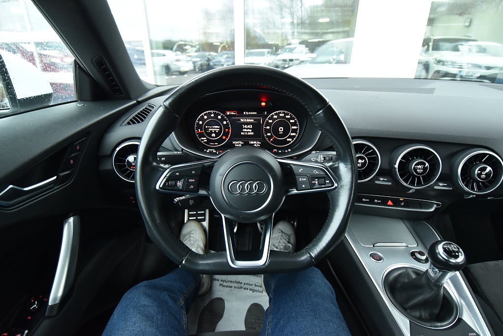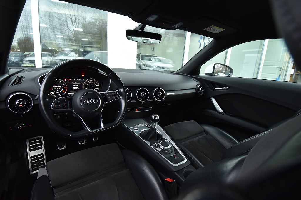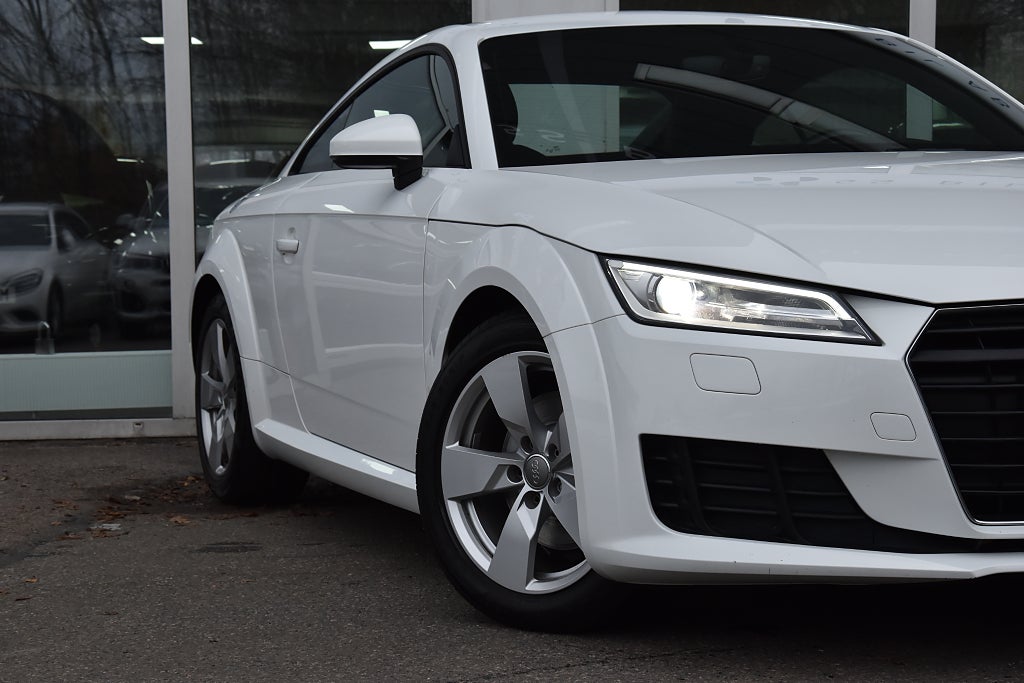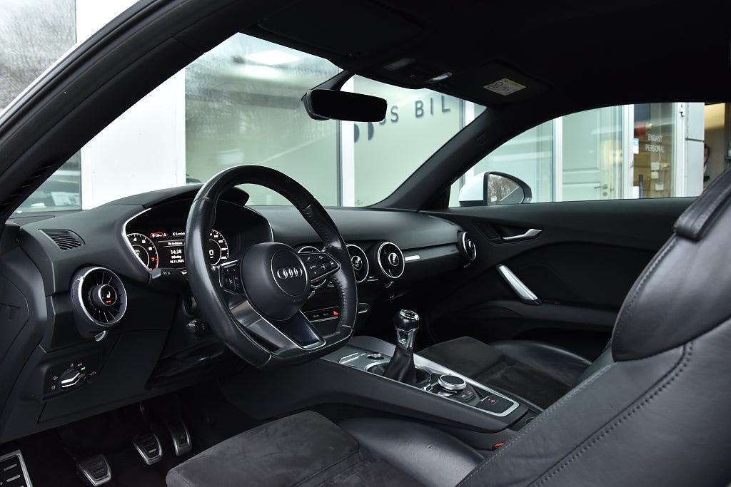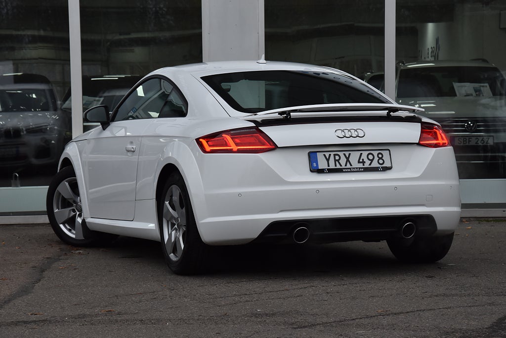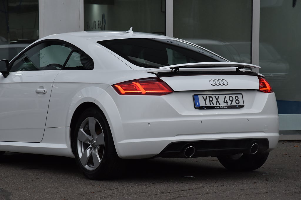 Audi TT Coupé 1.8 TFSI Manuell, 180hk, 2018 – i helt rätt utförande med bland annat parkeringssensor / utfällbar vinge / alcantara–skinnklädsel / svart innertak / Bluetooth / telefon / USB / sportstolar / sportratt.