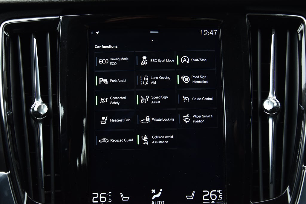 Säkerheten är mycket hög med funktioner som adaptiv farthållare, autobroms, lane assist, BLIS och side assist. Backkamera och parkeringssensorer gör parkeringen enkel, medan elbaklucka och infällbar dragkrok gör bilen både praktisk och flexibel i vardagen.