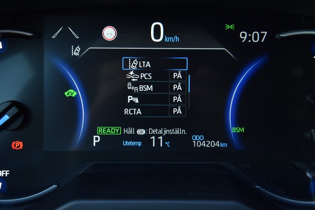 Säkerheten är hög med funktioner som autobroms, dödavinkelvarning, avåkningsvarnare, skyltigenkänning och automatiska helljus. Backkamera gör parkering enkel och smidig, medan dragkrok gör bilen praktisk i vardagen.